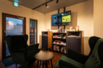 お好きな場所の椅子 (背もたれにはコーヒーカップの透かし彫りが施されています) やソファーに座り、思い思いにゆっくりくつろいでお過ごし下さい。